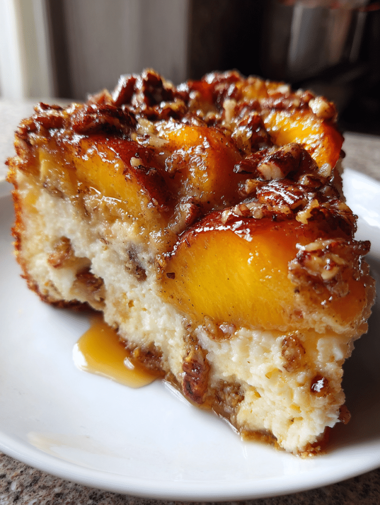 Pastel de Desayuno con Requesón, Durazno y Nuez Pecana – Suave, Proteico y Delicioso